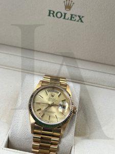 當這枚金色的Day Date 36流轉到W小姐手中時,那沉穩的質感,是幾代生命重量的堆疊。如今,這枚穿越近半世紀的Rolex Day-Date 36,即將棲於W小姐那即將大學畢業、準備踏入社會的兒子腕間。